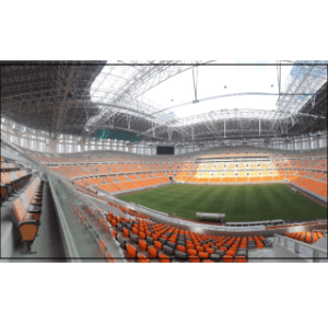 Menggunakan material waterproofing dan sport flooring, expansion joint, serta acoustic yang bermutu tinggi dan berstandar internasional.